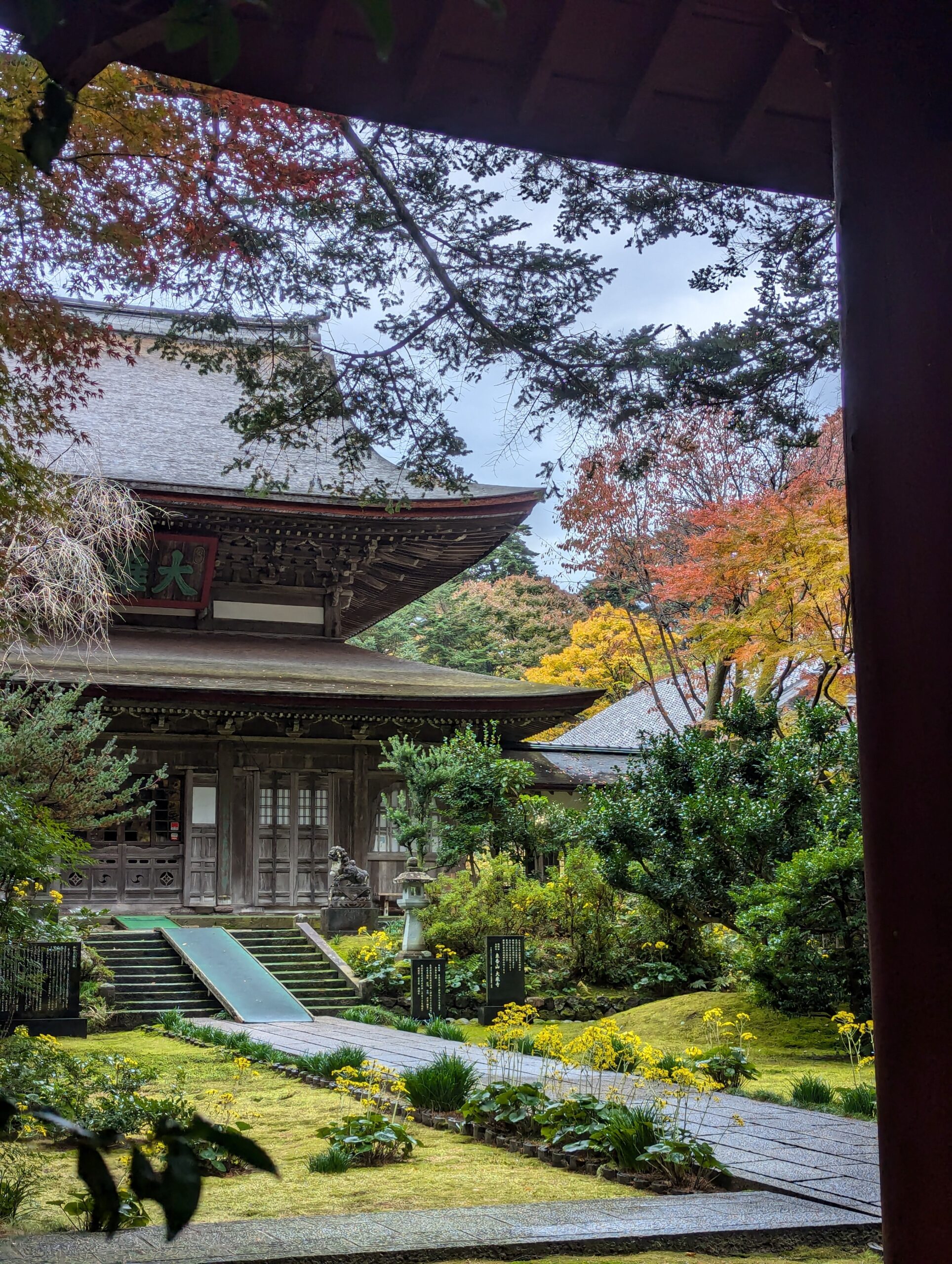 重要文化財。元禄15年(1702)上棟。建物は低い基檀の上に建ち、屋根は入母屋造、平入、現在は総杮(こけら)葺きとなっている。三間四方の身舎に一重裳層をつけた五間四方仏殿で、全体の意匠としては禅宗様を基調とするが、細部において和様の要素が多分に見られ、江戸中期における地方禅宗寺の雰囲気をよく伝えている。柱は来迎柱二本のみ丸柱とし、他はすべて唐戸面取り柱である。上層の斗栱は二手先、尾棰付、木鼻付、下層の斗栱は三斗組、木鼻付でともに詰組とし、軒先は二軒繁棰であるが、上層では扇棰になっている。堂内の床は漆喰叩きの土間とし背面側に大梁を架け、大瓶束を立てて天井桁を受け、中央は竜を描く鏡天井とし、周囲は霊鳥を描いた格天井を張る。来迎柱の前には唐様の須弥壇を設け、三尊を安置しており、裳層部分は海老虹梁で繋ぎ、天井桁を化粧屋根裏とする。また柱間装置は正面中三間を双折桟唐戸を吊り、両端及び側面の中央間には花頭窓、背面には丸窓を入れるなど変化に富んでいる。